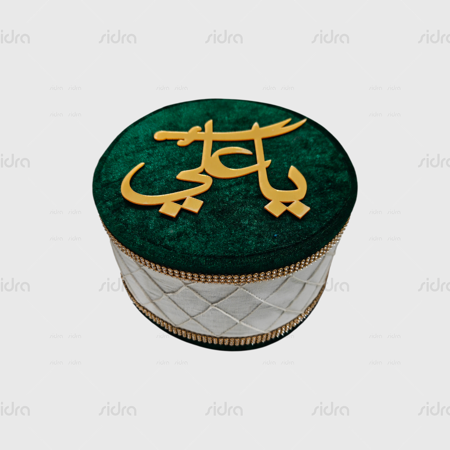 Ya Ali White & Green Handmade CapYa Ali White & Green Handmade Cap